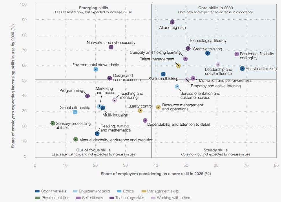 El porcentaje de empleadores que consideran una habilidad como esencial en 2025.