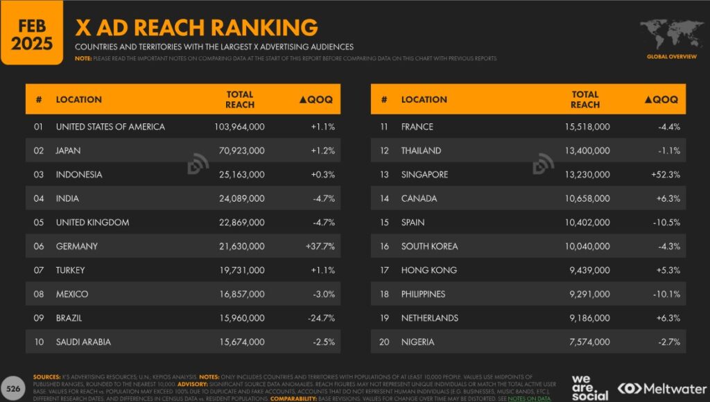 X (antes Twitter) cuenta con más 585,8 millones de usuarios activos en un mes.