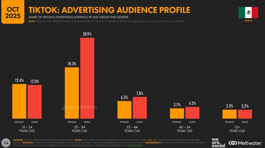 No obstante, al igual que ocurre con otras plataformas, es fundamental recordar que las audiencias publicitarias representan solo una parte del total de usuarios de TikTok. Dado que las herramientas de la plataforma solo reportan datos para personas mayores de 18 años, las variaciones en las cifras de alcance publicitario no necesariamente reflejan de forma exacta los cambios en la base total de usuarios, especialmente entre los segmentos más jóvenes.