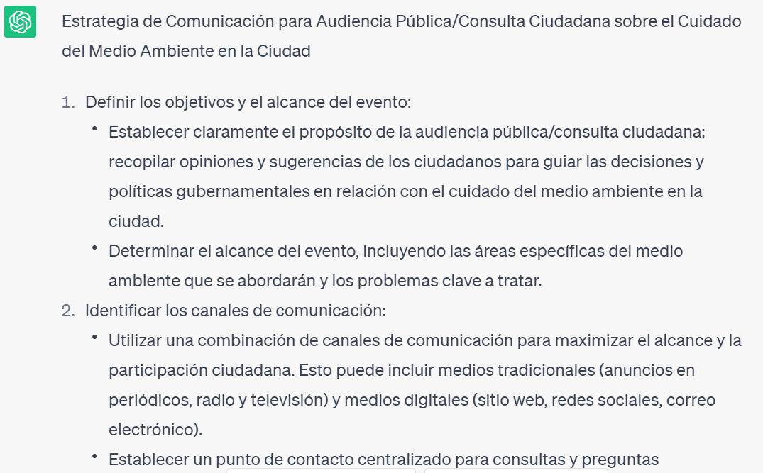 Prompt que crea una estrategia de participación ciudadana utilizando ChatGPT: